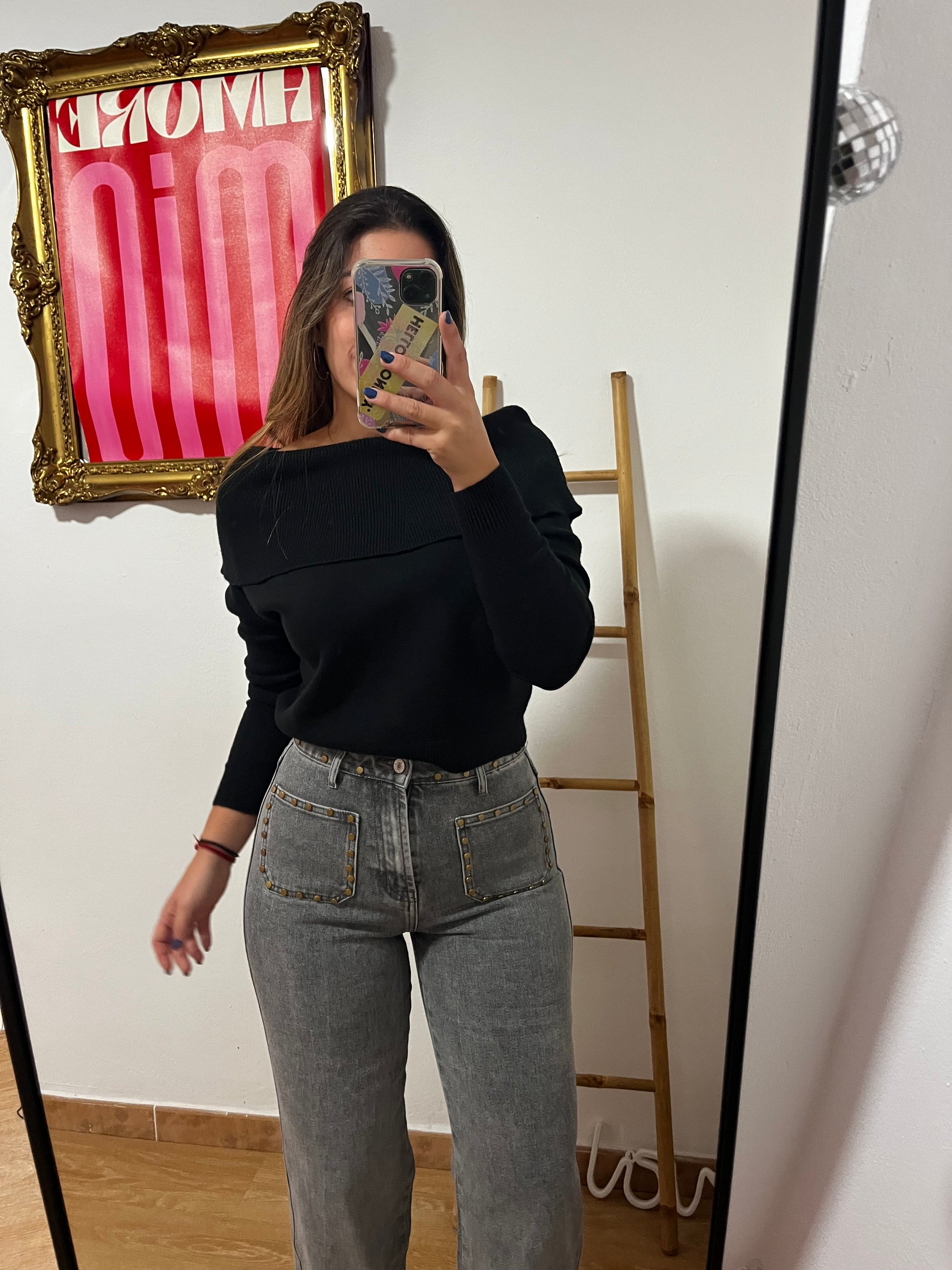 Pantalones vaqueros con tachuelas, tienen elastán y estiran un poco, muy cómodos.